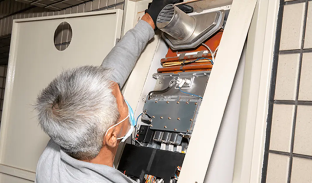 修理内容:給湯器本体内部の中和器を交換し、修理。年数が15年以上のもので応急処置的なものになります。交換も検討していただいております。